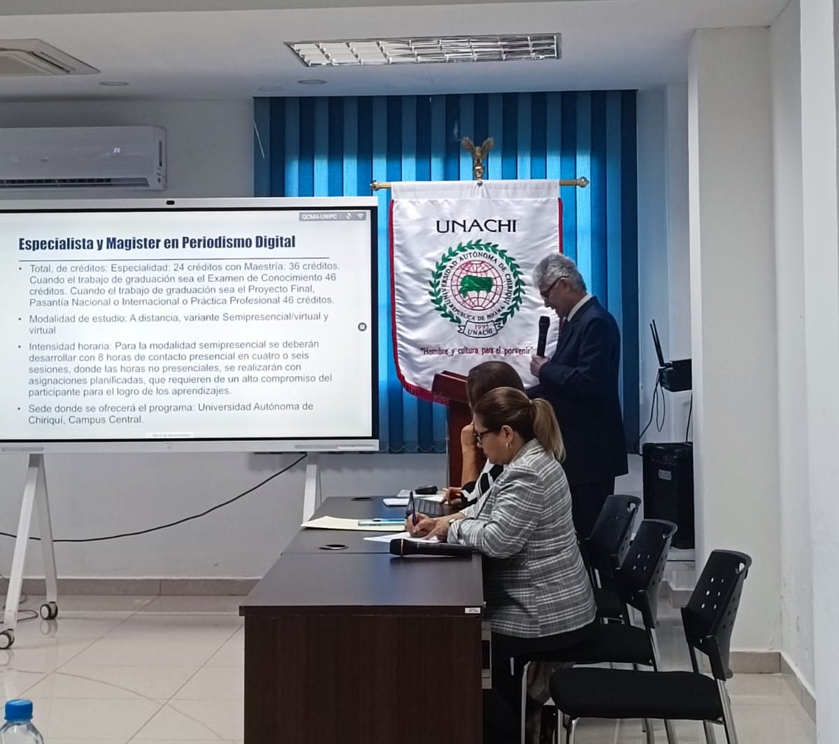 La Facultad de Comunicación Social de La Universidad Autónoma de Chiriquí, presentó el programa de Especialización y Maestría en Periodismo Digital ante el consejo académico, este programa enfatiza en la innovación, el manejo de herramientas tecnológicas y digitales, y la práctica efectiva como pilares fundamentales para un ejercicio exitoso y actualizado de la profesión.